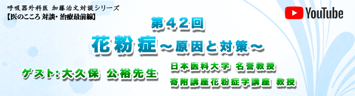 第42回 花粉症 ~原因と対策~(ゲスト:大久保 公裕 先生 日本医科大学 名誉教授 ) 2025年12月25日 最終更新日時 : 2025年12月25日 siHIrldi48e 下記アンケート用URLより、皆様のご感想、ご意見をお寄せください。 https://forms.gle/Bb319kLqqpSZKpk8A